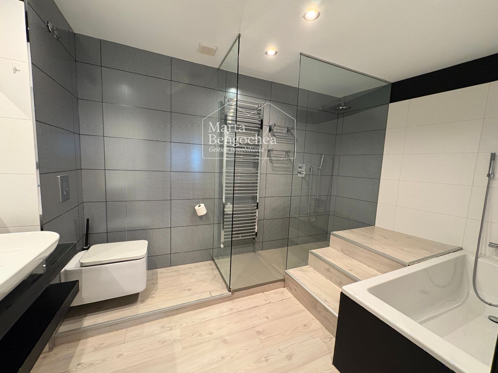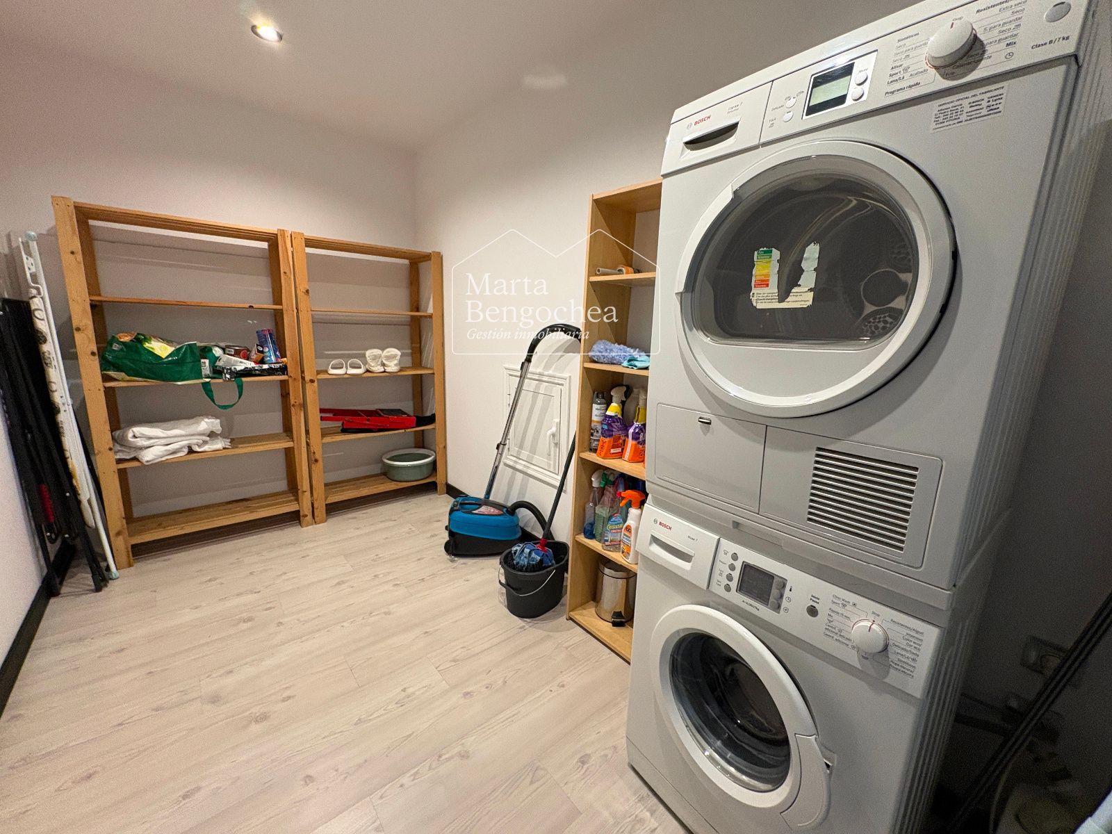 La vivienda dispone de cuatro dormitorios. La habitación principal, de 25 m², incluye vestidor y un baño privado con ducha, bañera y persianas motorizadas. Las otras tres habitaciones son amplias y luminosas. Además, cuenta con un segundo baño completo con un gran plato de ducha, cuarto de lavado y planchado, y zona de almacenaje adicional.