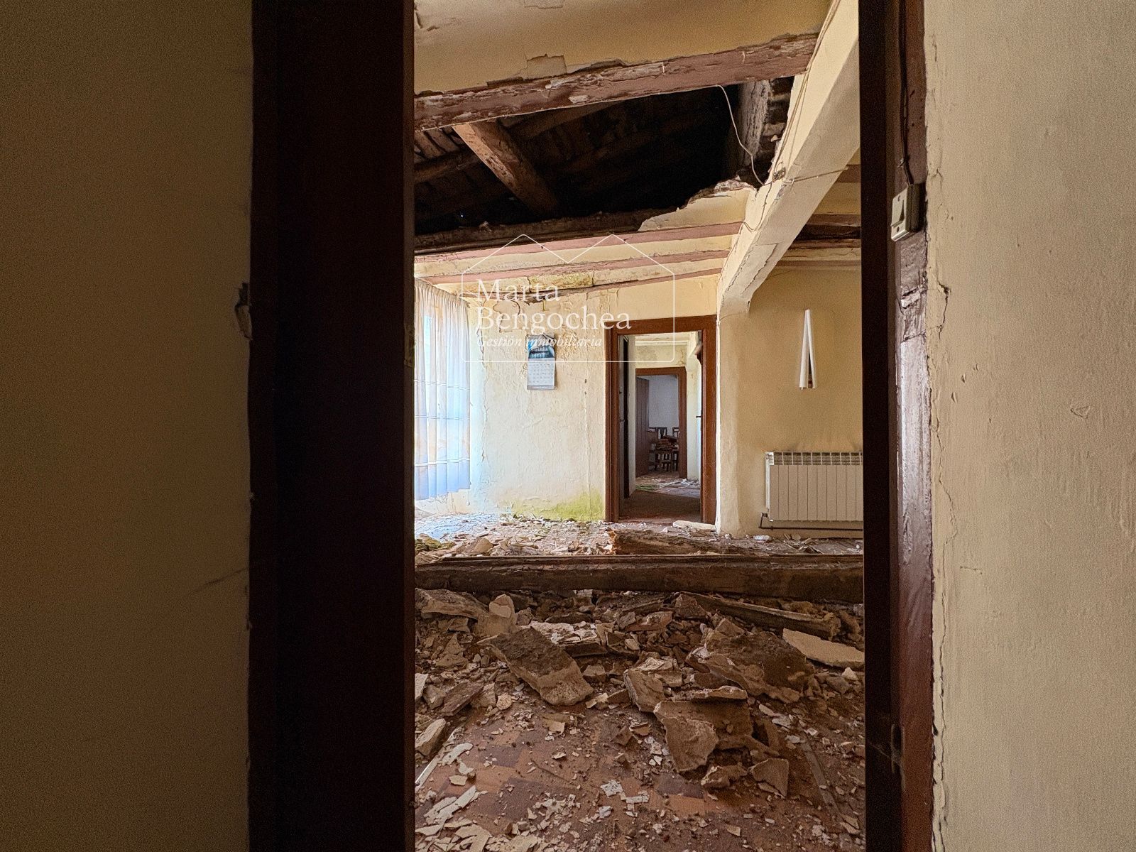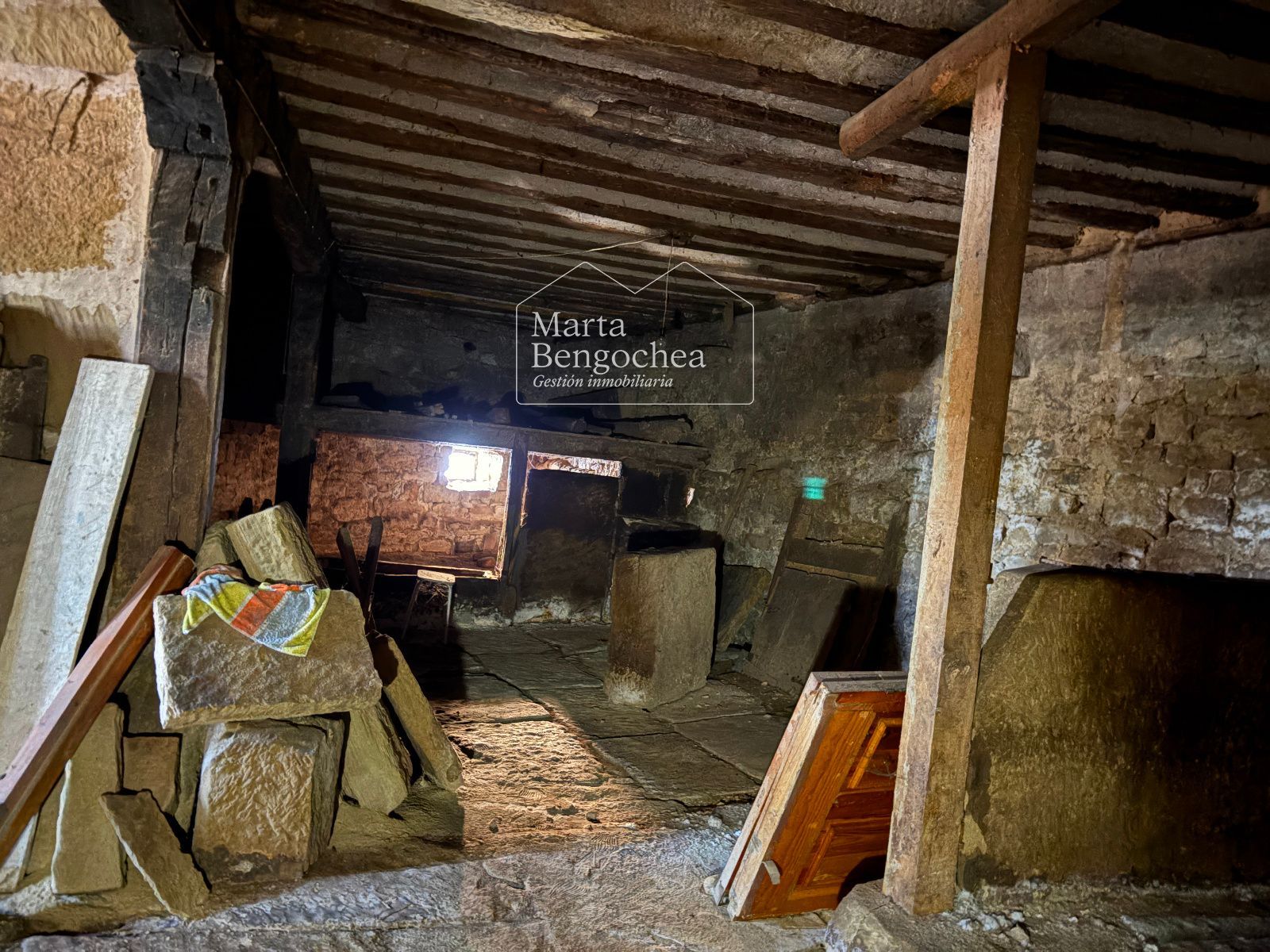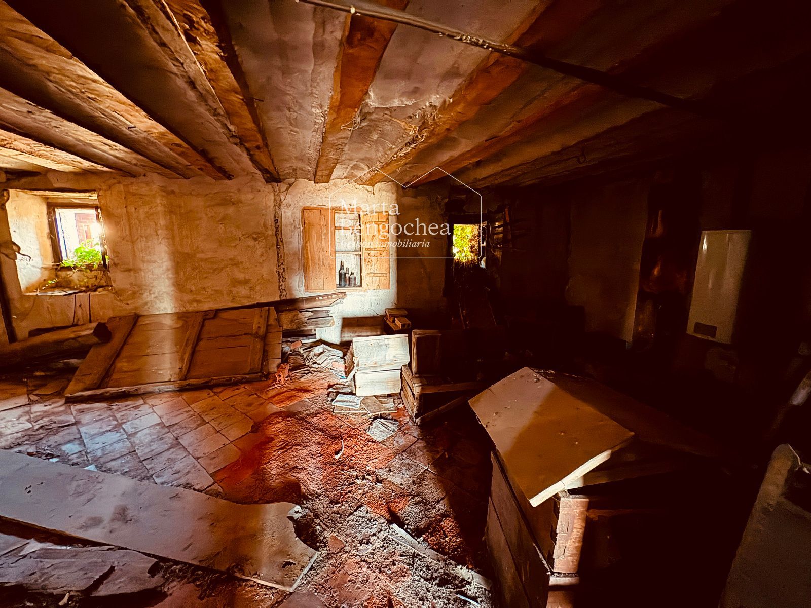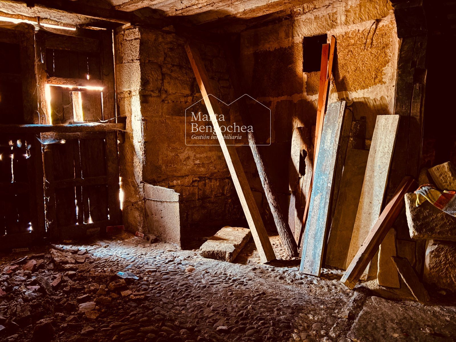 Desde el portón de entrada original accedemos a la planta baja, que conserva zonas destinadas a almacenaje y antiguo uso agrícola. Las plantas superiores están divididas en salones, dormitorios, cocinas, zonas de despacho y espacios bajo cubierta. El estado actual requiere una rehabilitación integral, pero los elementos arquitectónicos existentes permiten imaginar una transformación espectacular.