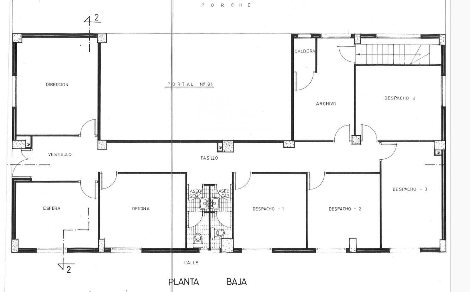 Actualmente distribuido en varias estancias, dispone además de dos cuartos de baño y un acceso a una planta de sótano de unos 25-30 m², ideal como almacén o archivo.