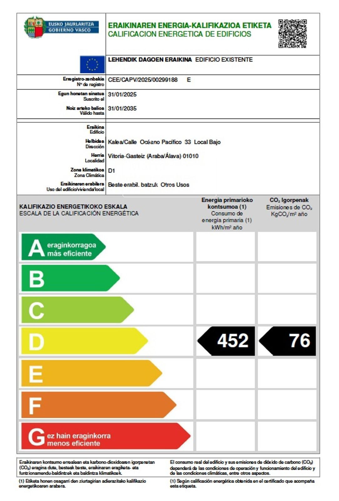 Calificación Energética (D) VER